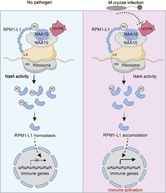 生命科学学院王永红团队揭示OsHYPK/NatA介导N端乙酰化调控水稻抗病与生长平衡的新机制