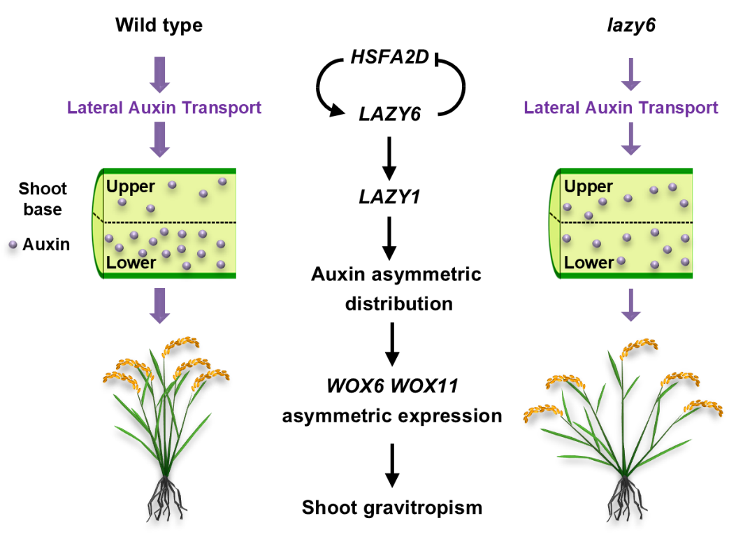 生命科学学院王永红团队与农学院张宁团队合作揭示HSFA2D-LAZY6-LAZY1模块调控水稻分蘖角度的新机制